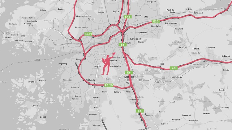 Runt och genom centrala Göteborg finns trafikleder som Trafikverket ansvarar för.