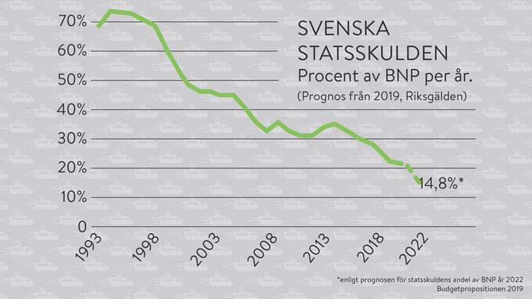 Staten bör inte låna till konsumtion men att låna till en investering med 80-100 års livslängd kan vara motiverat. Istället för att låna så amorterar Sverige på en redan rekordlåg statsskuld. Prognosen för innevarande mandatperiod visar att Sverige ska betala av 360 miljarder kronor på statsskulden. En tredjedel av den summan finansierar de återstående delsträckor som krävs för att binda ihop den påbörjade järnvägen och Götaland.