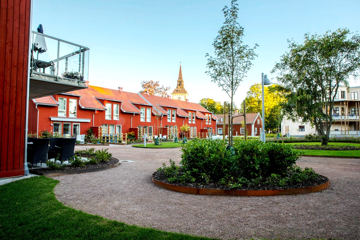 - Det är väl det som är det unika, att det gick att få in 18 lägenheter väldigt centralt och just i den här gamla kulturmiljön. Hela Hjo med den gamla trästaden kan upplevas som ett enda stort byggnadsminne. Det kan därför vara svårt att komplettera med ny bebyggelse utan att det blir fel, men det här tillägget tycker vi blev naturligt och smälter in väldigt bra.