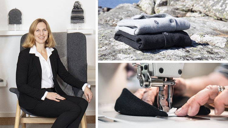 – För sömnad samarbetar vi med en sömnadspartner i Baltikum. Men 95 procent av våra produkter stickas i Sätila. Och då vi inte behöver skicka prover fram och tillbaka kan vi minska antalet transporter, säger Sara Nevander.
