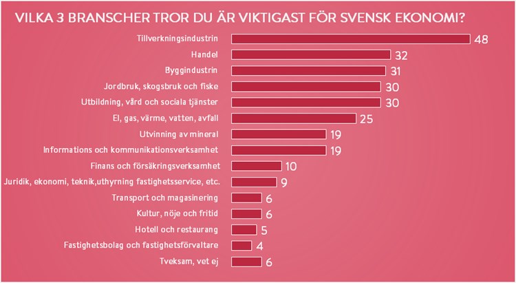 - Resultaten av denna undersökning påvisar att allmänheten överlag har en positiv bild av industrin samt förståelse för att den utgör en väsentlig del av svensk ekonomi. Varannan uppger att de tror att tillverkningsindustrin är en av de tre viktigaste branscherna för svensk ekonomi i dag, fortsätter Evelina Wahlqvist.