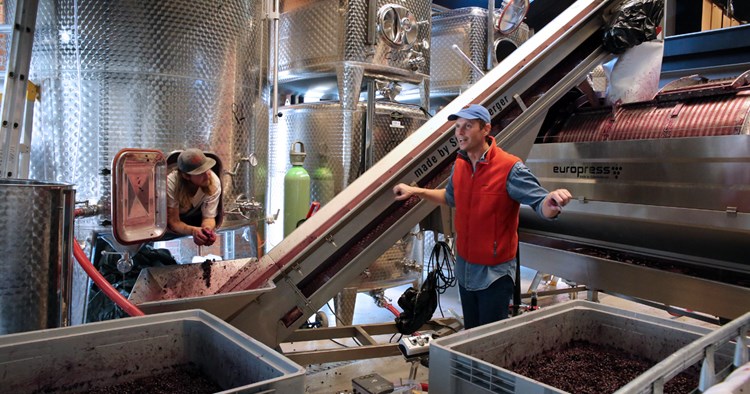 – Just nu är vi inne i ett par intensiva veckor där pressningen pågår nästan dygnet runt. Vi är själva på plats och köper druvor från Tyskland, Frankrike och Ungern. Dessa kör vi hit med kylbilar till Gamlestaden.