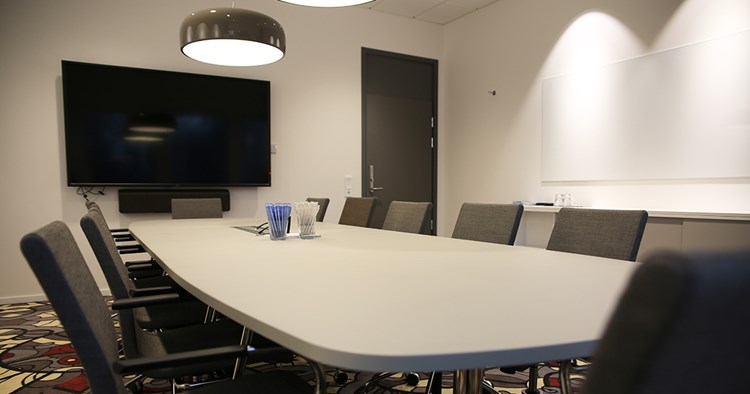 WiFi, webbkamera, digitalskärm 80” med clickshare/HDMI koppling, konferenshögtalare, 2 whiteboards, blädderblock.