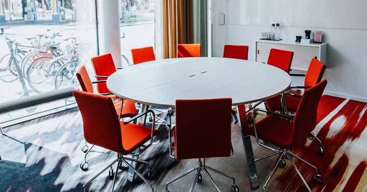 Det runda bordet i vårt mötesrum TESTBANAN öppnar upp för kreativa diskussioner där alla kommer till tals.
